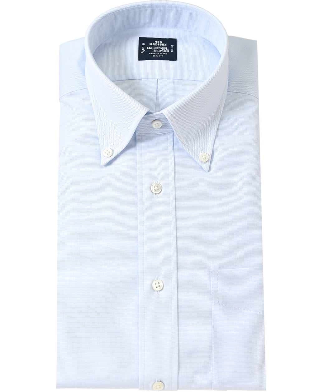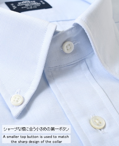 通常針目は3cmに18針以上で高級とされていますが、私たちのシャツは21針で縫い上げられています。また、耐久性に優れた「巻き伏せ本縫い」でシャツを仕立てています。