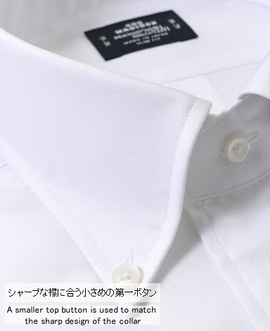 通常針目は3cmに18針以上で高級とされていますが、私たちのシャツは21針で縫い上げられています。また、耐久性に優れた「巻き伏せ本縫い」でシャツを仕立てています。