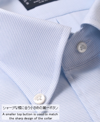 ■第一ボタンには、シャープな襟に合う小さめの9mmボタンを使用。