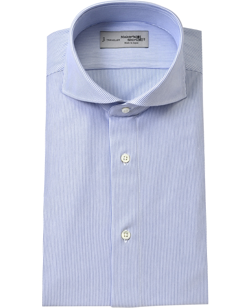 伸縮性のあるニット生地を使用しているため、荷物からだしてもシワが気になりませ ん。出張先では霧吹きをしてハンガーにかければ、時間やお金がかかるプレスも不 要。着用時のシワも目立たないので、移動の多い出張時の強い味方です。