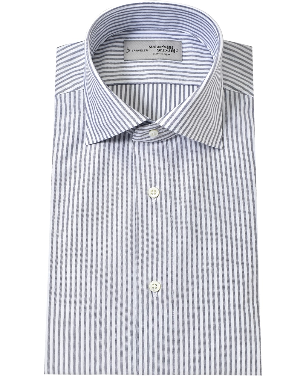 伸縮性のあるニット生地を使用しているため、荷物からだしてもシワが気になりませ ん。出張先では霧吹きをしてハンガーにかければ、時間やお金がかかるプレスも不 要。着用時のシワも目立たないので、移動の多い出張時の強い味方です。