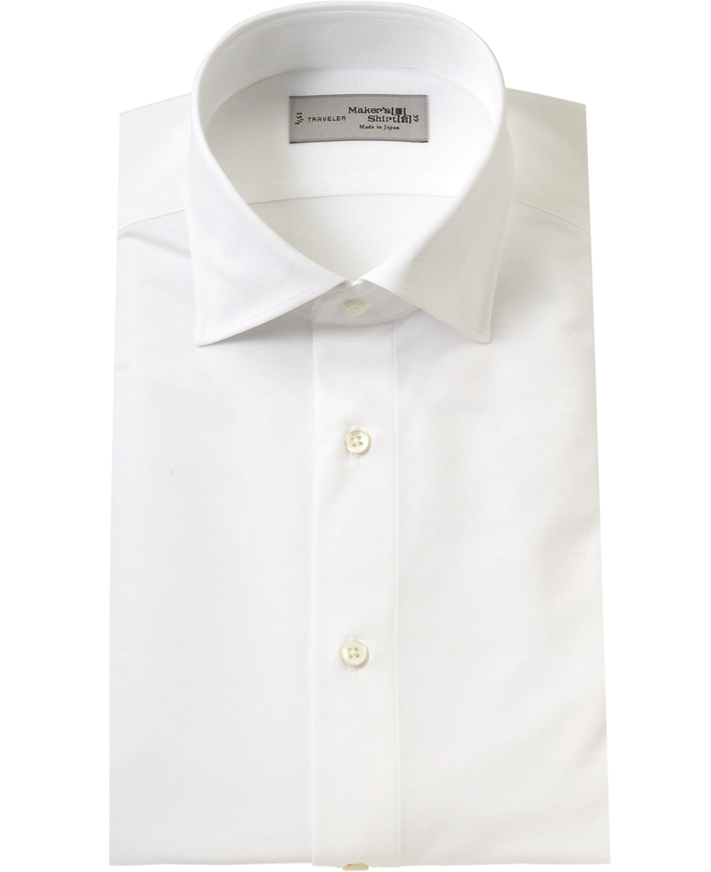 伸縮性のあるニット生地を使用しているため、荷物からだしてもシワが気になりませ ん。出張先では霧吹きをしてハンガーにかければ、時間やお金がかかるプレスも不 要。着用時のシワも目立たないので、移動の多い出張時の強い味方です。