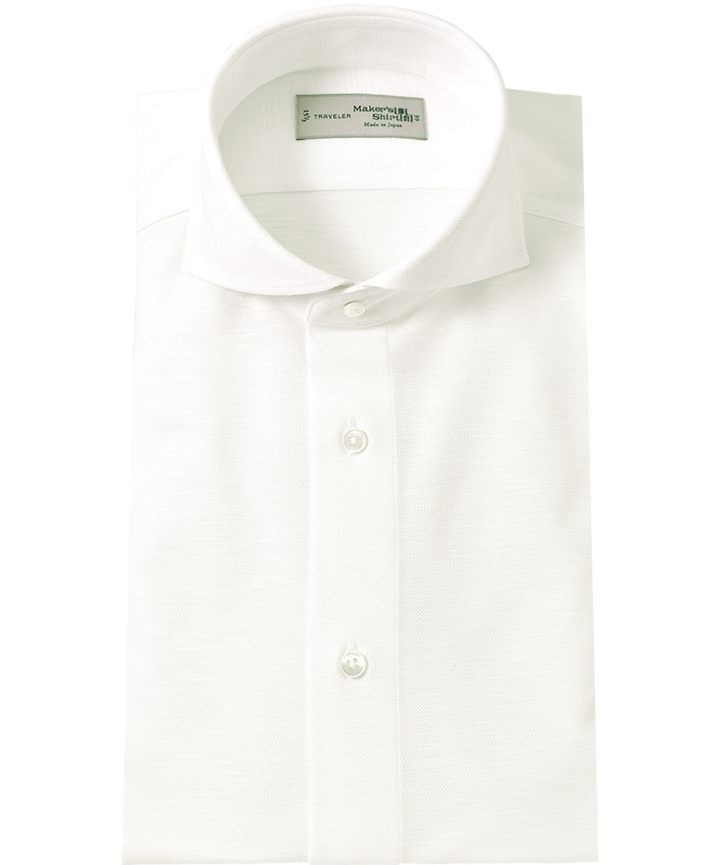 伸縮性のあるニット生地を使用しているため、荷物からだしてもシワが気になりませ ん。出張先では霧吹きをしてハンガーにかければ、時間やお金がかかるプレスも不 要。着用時のシワも目立たないので、移動の多い出張時の強い味方です。