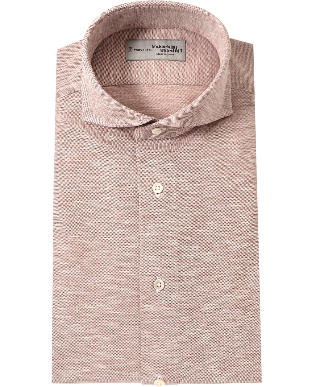伸縮性のあるニット生地を使用しているため、荷物からだしてもシワが気になりませ ん。出張先では霧吹きをしてハンガーにかければ、時間やお金がかかるプレスも不 要。着用時のシワも目立たないので、移動の多い出張時の強い味方です。
