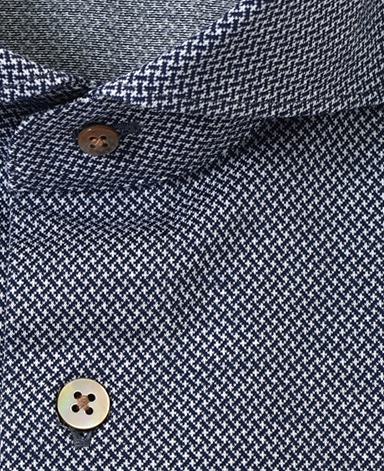 スイスのスプーリー社製の上質な糸を使用し、サラッとしていながらしっかりした上質な素材ならではの風合いに仕上がってい ます。また日本に3台しか存在しないジャガード編み機により、柄が表現されています。シーズンを問わずお楽しみいただける上質な素材のニットシャツです。
