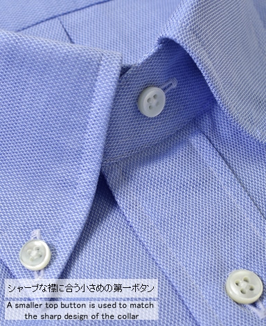 ■第一ボタンには、シャープな襟に合う小さめの9mmボタンを使用。