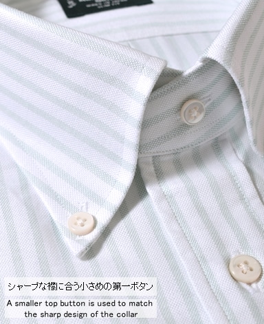 通常針目は3cmに18針以上で高級とされていますが、私たちのシャツは21針で縫い上げられています。また、耐久性に優れた「巻き伏せ本縫い」でシャツを仕立てています。