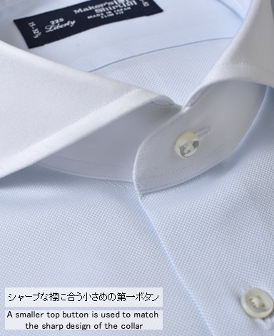 通常針目は3cmに18針以上で高級とされていますが、私たちのシャツは21針で縫い上げられています。また、耐久性に優れた「巻き伏せ本縫い」でシャツを仕立てています。