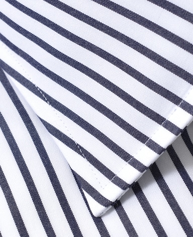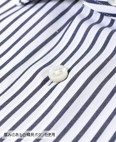 通常針目は3cmに18針以上で高級とされていますが、私たちのシャツは21針で縫い上げられています。また、耐久性に優れた「巻き伏せ本縫い」でシャツを仕立てています。