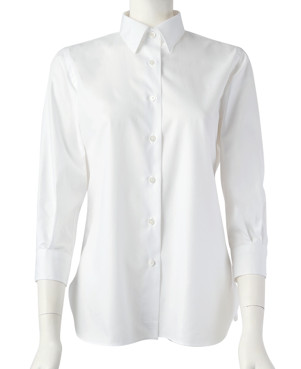 手首がスッキリ見える七分袖のベーシックシャツは、ワードローブに加えたいマストアイテムです。