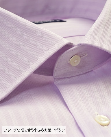■襟の表裏のパターンに差をつけ、コンパクトかつ構築的な襟を実現。品の良いドレスシャツの証である、首に巻きつくような内巻きフォルムは、匠によるいせ込み技術の成果です。