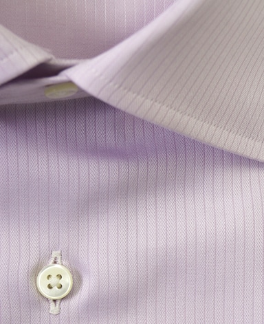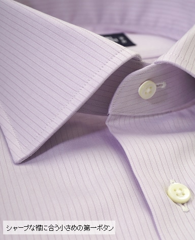 ■襟の表裏のパターンに差をつけ、コンパクトかつ構築的な襟を実現。品の良いドレスシャツの証である、首に巻きつくような内巻きフォルムは、匠によるいせ込み技術の成果です。