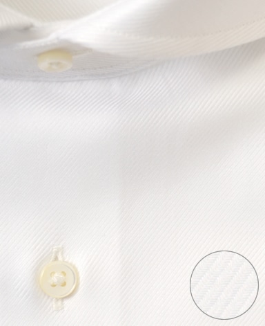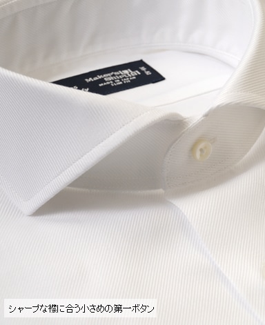 ■襟の表裏のパターンに差をつけ、コンパクトかつ構築的な襟を実現。品の良いドレスシャツの証である、首に巻きつくような内巻きフォルムは、匠によるいせ込み技術の成果です。
