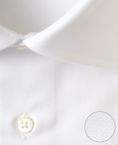 ■襟の表裏のパターンに差をつけ、コンパクトかつ構築的な襟を実現。品の良いドレスシャツの証である、首に巻きつくような内巻きフォルムは、匠によるいせ込み技術の成果です。