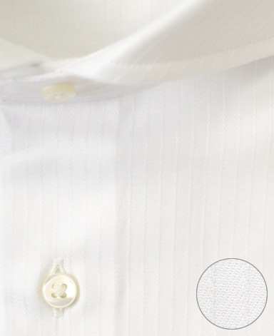 ■襟の表裏のパターンに差をつけ、コンパクトかつ構築的な襟を実現。品の良いドレスシャツの証である、首に巻きつくような内巻きフォルムは、匠によるいせ込み技術の成果です。