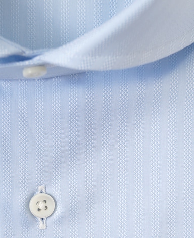 ■襟の表裏のパターンに差をつけ、コンパクトかつ構築的な襟を実現。品の良いドレスシャツの証である、首に巻きつくような内巻きフォルムは、匠によるいせ込み技術の成果です。