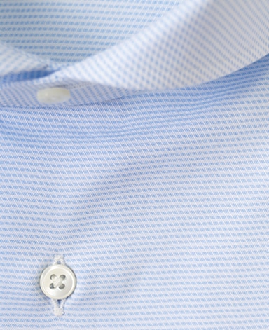 ■襟の表裏のパターンに差をつけ、コンパクトかつ構築的な襟を実現。品の良いドレスシャツの証である、首に巻きつくような内巻きフォルムは、匠によるいせ込み技術の成果です。