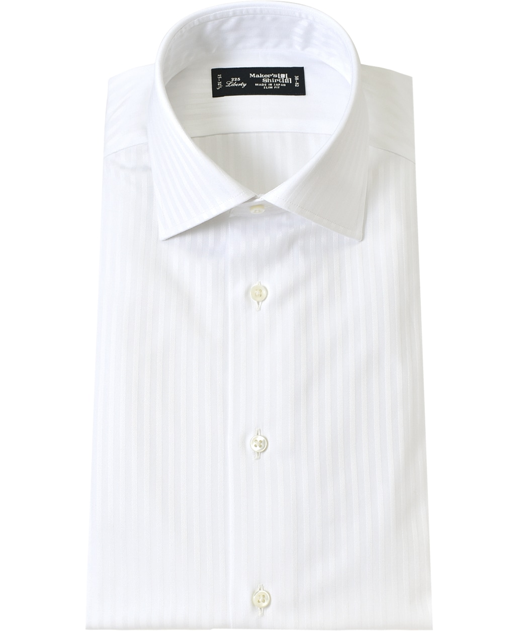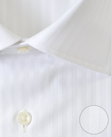 ■襟の表裏のパターンに差をつけ、コンパクトかつ構築的な襟を実現。品の良いドレスシャツの証である、首に巻きつくような内巻きフォルムは、匠によるいせ込み技術の成果です。