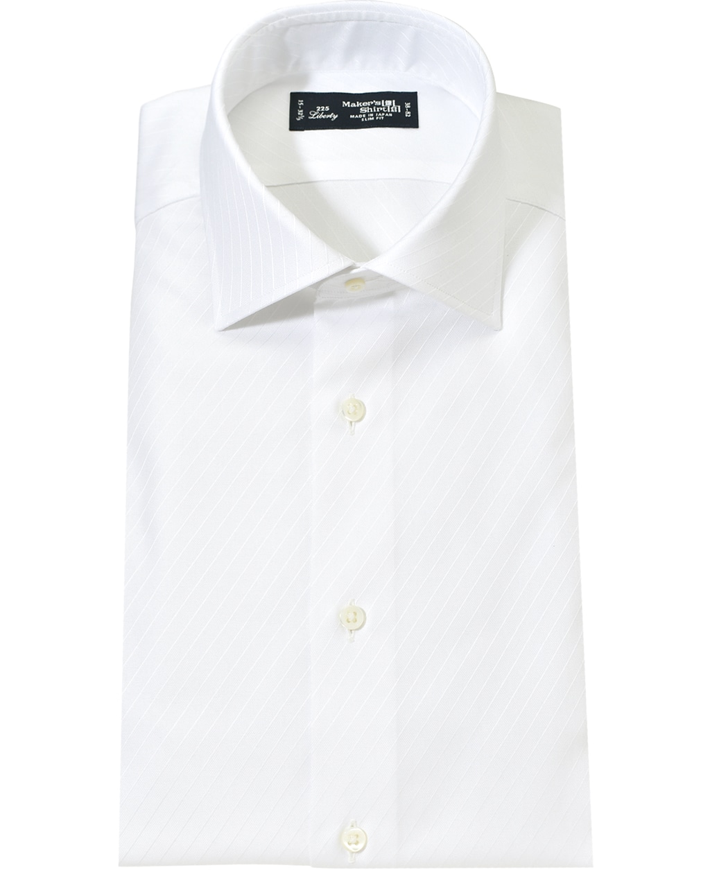 通常針目は3cmに18針以上で高級とされていますが、私たちのシャツは21針で縫い上げられています。また、耐久性に優れた「巻き伏せ本縫い」でシャツを仕立てています。