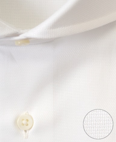 ■襟の表裏のパターンに差をつけ、コンパクトかつ構築的な襟を実現。品の良いドレスシャツの証である、首に巻きつくような内巻きフォルムは、匠によるいせ込み技術の成果です。