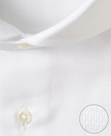 ■襟の表裏のパターンに差をつけ、コンパクトかつ構築的な襟を実現。品の良いドレスシャツの証である、首に巻きつくような内巻きフォルムは、匠によるいせ込み技術の成果です。