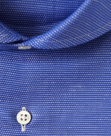 ■襟の表裏のパターンに差をつけ、コンパクトかつ構築的な襟を実現。品の良いドレスシャツの証である、首に巻きつくような内巻きフォルムは、匠によるいせ込み技術の成果です。