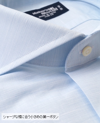 ■第一ボタンには、シャープな襟に合う小さめの9mmボタンを使用。