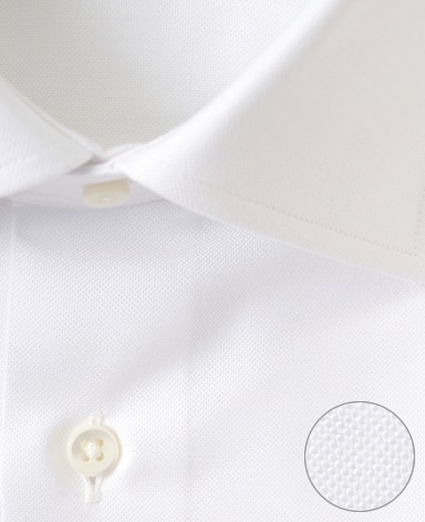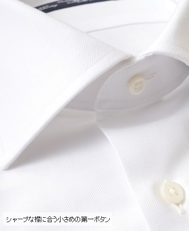 ■襟の表裏のパターンに差をつけ、コンパクトかつ構築的な襟を実現。品の良いドレスシャツの証である、首に巻きつくような内巻きフォルムは、匠によるいせ込み技術の成果です。