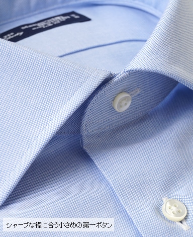 ■第一ボタンには、シャープな襟に合う小さめの9mmボタンを使用。