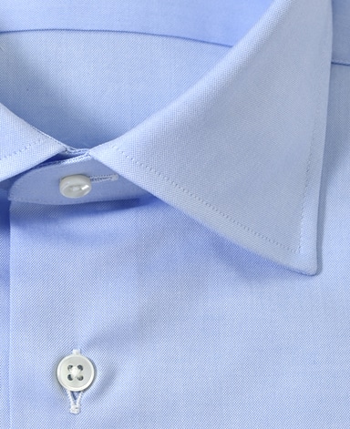 ■襟の表裏のパターンに差をつけ、コンパクトかつ構築的な襟を実現。品の良いドレスシャツの証である、首に巻きつくような内巻きフォルムは、匠によるいせ込み技術の成果です。