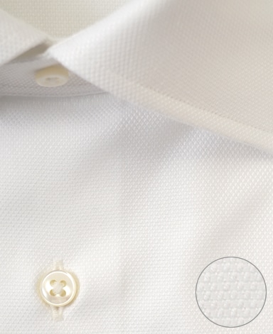 ■襟の表裏のパターンに差をつけ、コンパクトかつ構築的な襟を実現。品の良いドレスシャツの証である、首に巻きつくような内巻きフォルムは、匠によるいせ込み技術の成果です。