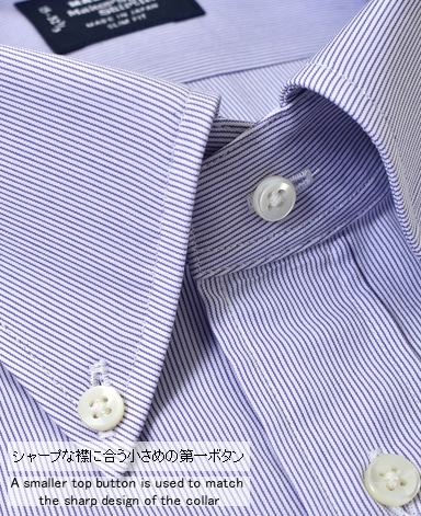 ■第一ボタンには、シャープな襟に合う小さめの9mmボタンを使用。