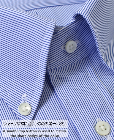■第一ボタンには、シャープな襟に合う小さめの9mmボタンを使用。