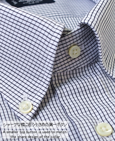 ■第一ボタンには、シャープな襟に合う小さめの9mmボタンを使用。
