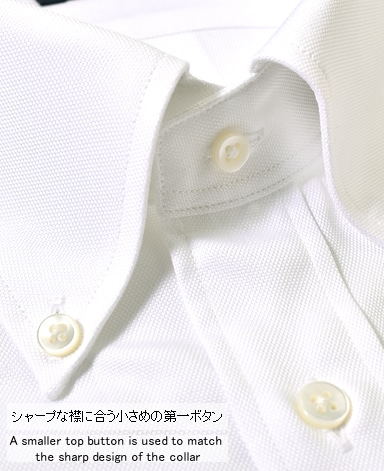 ■第一ボタンには、シャープな襟に合う小さめの9mmボタンを使用。