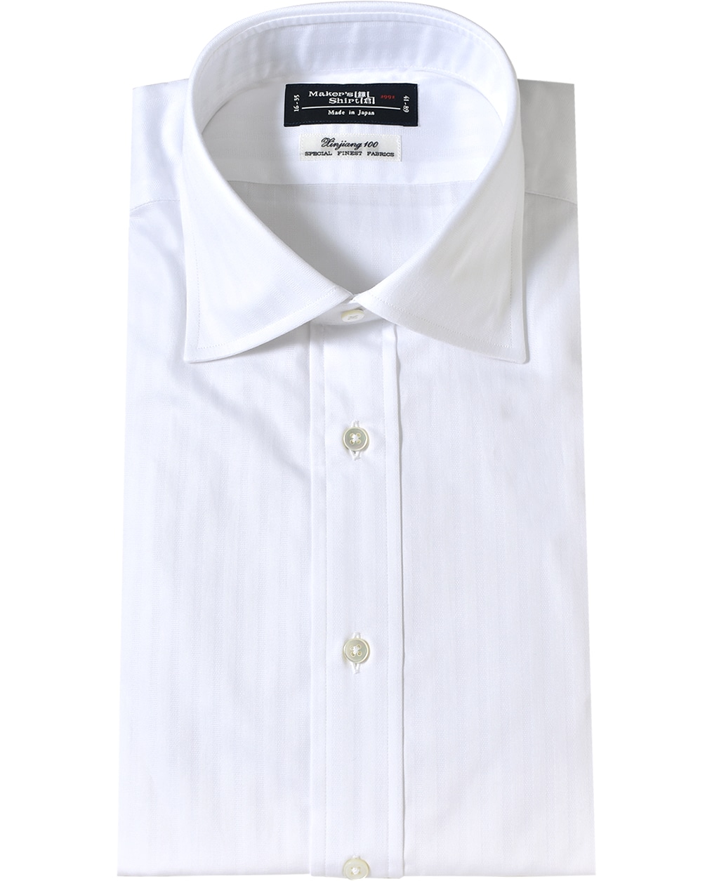 通常針目は3cmに18針以上で高級とされていますが、私たちのシャツは21針で縫い上げられています。また、耐久性に優れた「巻き伏せ本縫い」でシャツを仕立てています。