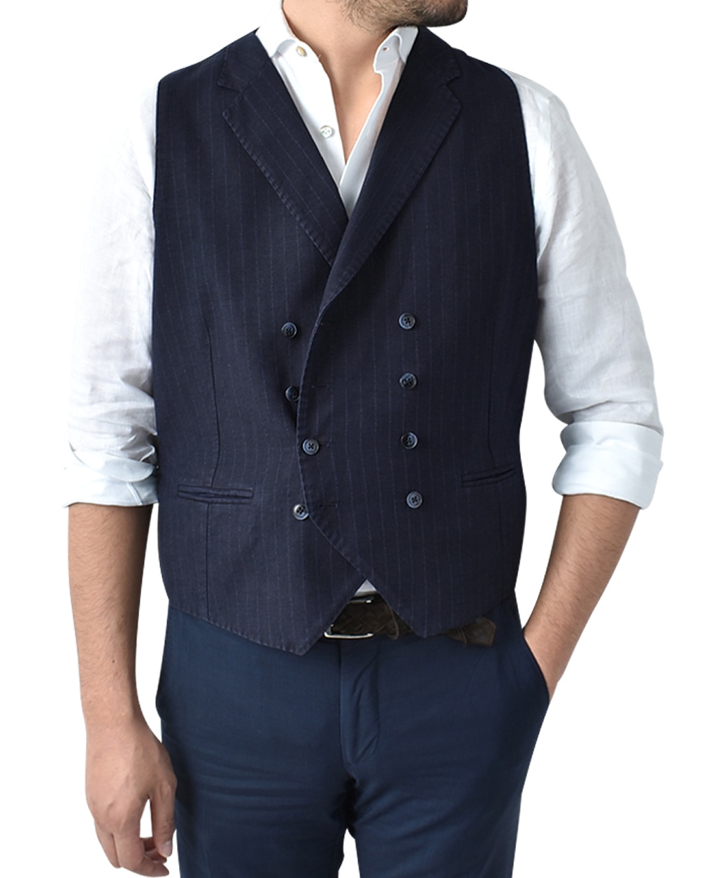 昨今の注目アイテムの一つであるジレ。 最近ではクラシックなディテールを取り入れたダブルタイプも増えています。 今期の134では、ダブルのパターンにリネンコットン素材を採用し、清涼感とクラシック感を両立しました。