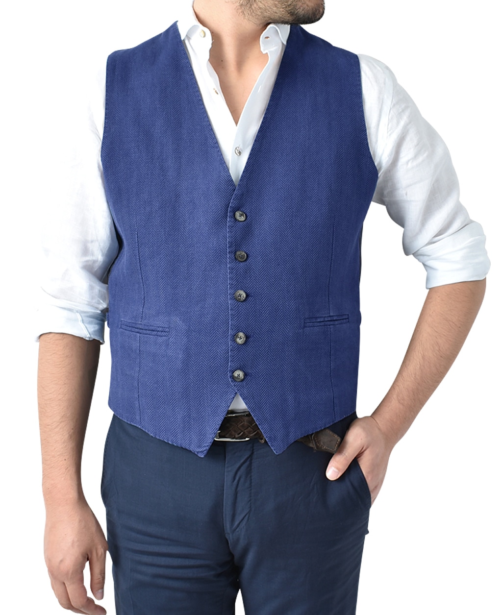 リネンコットン素材のシングルジレが登場。使いやすいベーシックな形状で、展開カラーも使いやすいブルーとベージュを採用しました。