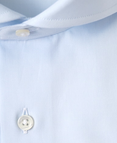 ■襟の表裏のパターンに差をつけ、コンパクトかつ構築的な襟を実現。品の良いドレスシャツの証である、首に巻きつくような内巻きフォルムは、匠によるいせ込み技術の成果です。