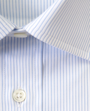 通常針目は3cmに18針以上で高級とされていますが、私たちのシャツは21針で縫い上げられています。また、耐久性に優れた「巻き伏せ本縫い」でシャツを仕立てています。