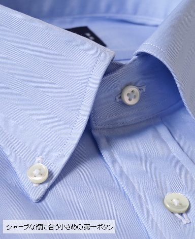 ■第一ボタンには、シャープな襟に合う小さめの9mmボタンを使用。