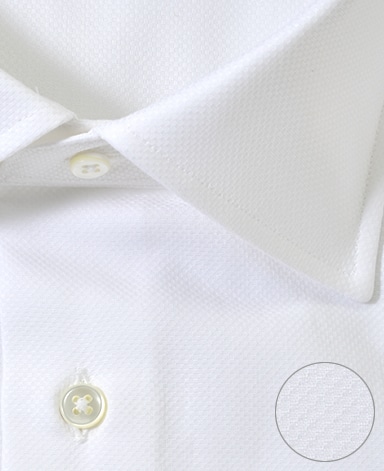 ■襟の表裏のパターンに差をつけ、コンパクトかつ構築的な襟を実現。品の良いドレスシャツの証である、首に巻きつくような内巻きフォルムは、匠によるいせ込み技術の成果です。