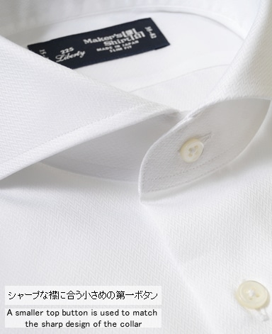 ■襟の表裏のパターンに差をつけ、コンパクトかつ構築的な襟を実現。品の良いドレスシャツの証である、首に巻きつくような内巻きフォルムは、匠によるいせ込み技術の成果です。