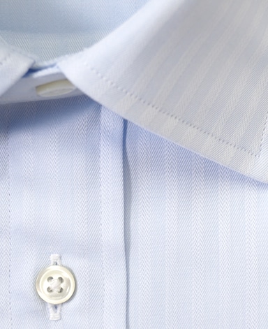 通常針目は3cmに18針以上で高級とされていますが、私たちのシャツは21針で縫い上げられています。また、耐久性に優れた「巻き伏せ本縫い」でシャツを仕立てています。
