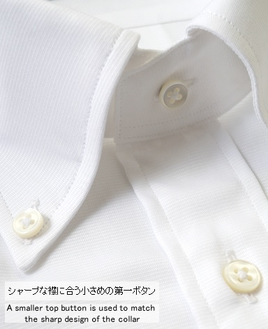 ■第一ボタンには、シャープな襟に合う小さめの9mmボタンを使用。