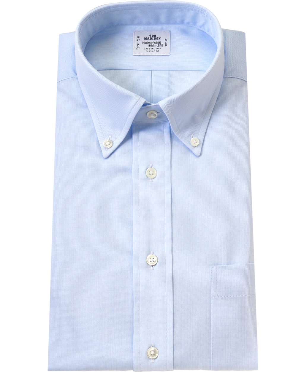 通常針目は3cmに18針以上で高級とされていますが、私たちのシャツは21針で縫い上げられています。また、耐久性に優れた「巻き伏せ本縫い」でシャツを仕立てています。