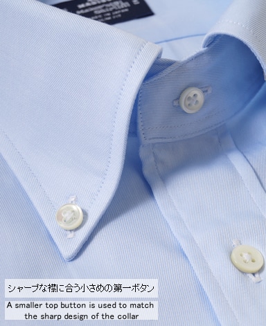 ■第一ボタンには、シャープな襟に合う小さめの9mmボタンを使用。