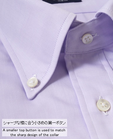 ■第一ボタンには、シャープな襟に合う小さめの9mmボタンを使用。
