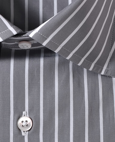 ■襟の表裏のパターンに差をつけ、コンパクトかつ構築的な襟を実現。品の良いドレスシャツの証である、首に巻きつくような内巻きフォルムは、匠によるいせ込み技術の成果です。