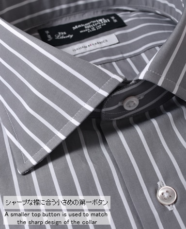 通常針目は3cmに18針以上で高級とされていますが、私たちのシャツは21針で縫い上げられています。また、耐久性に優れた「巻き伏せ本縫い」でシャツを仕立てています。